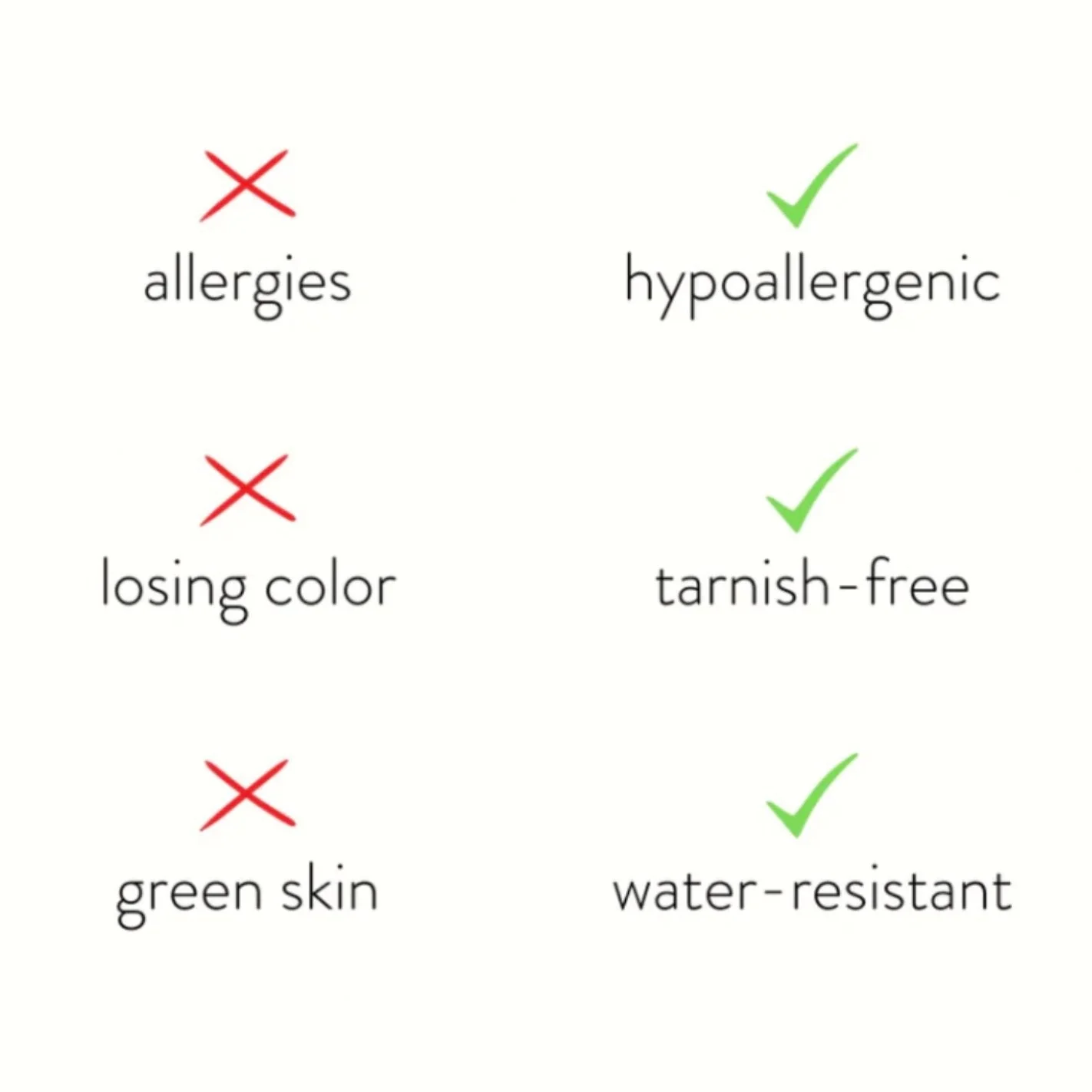 Made with waterproof titanium steel, you never need to worry about fading or tarnishing jewelry ever again!
