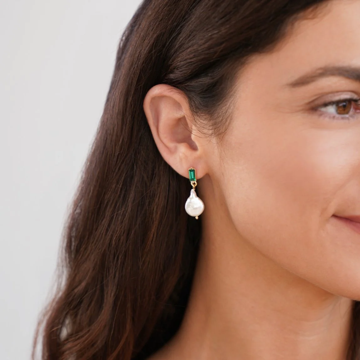 Pearls are the ultimate symbol of sophistication, beauty, and class. Instantly elevate any outfit with this stunning Green Crystal & Pearl Earrings.