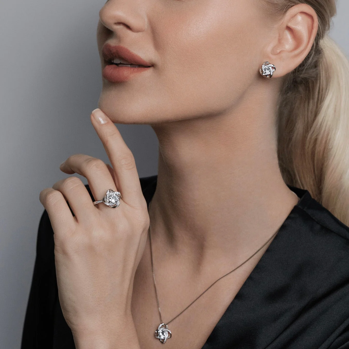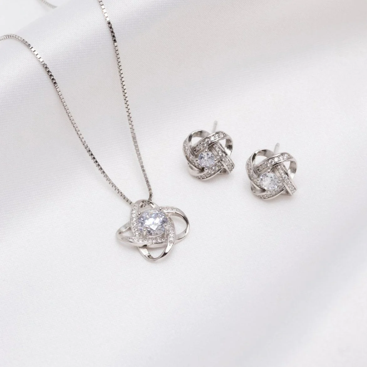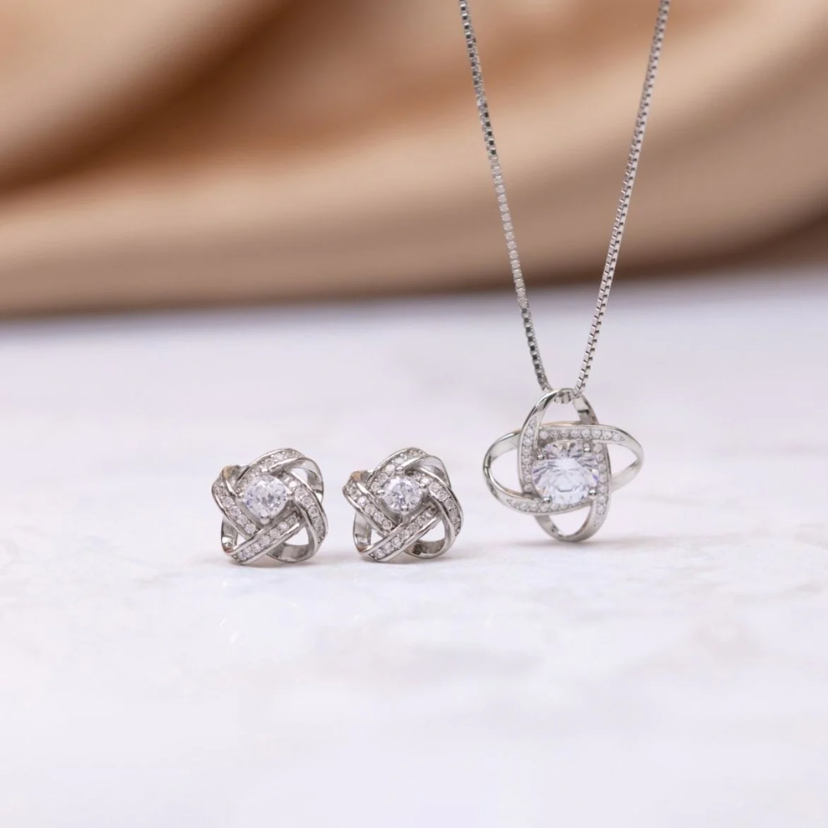 These beautiful earrings are a symbol of never-ending love. Sterling silver and sparkling crystals loop together to represent the intertwining of two souls.