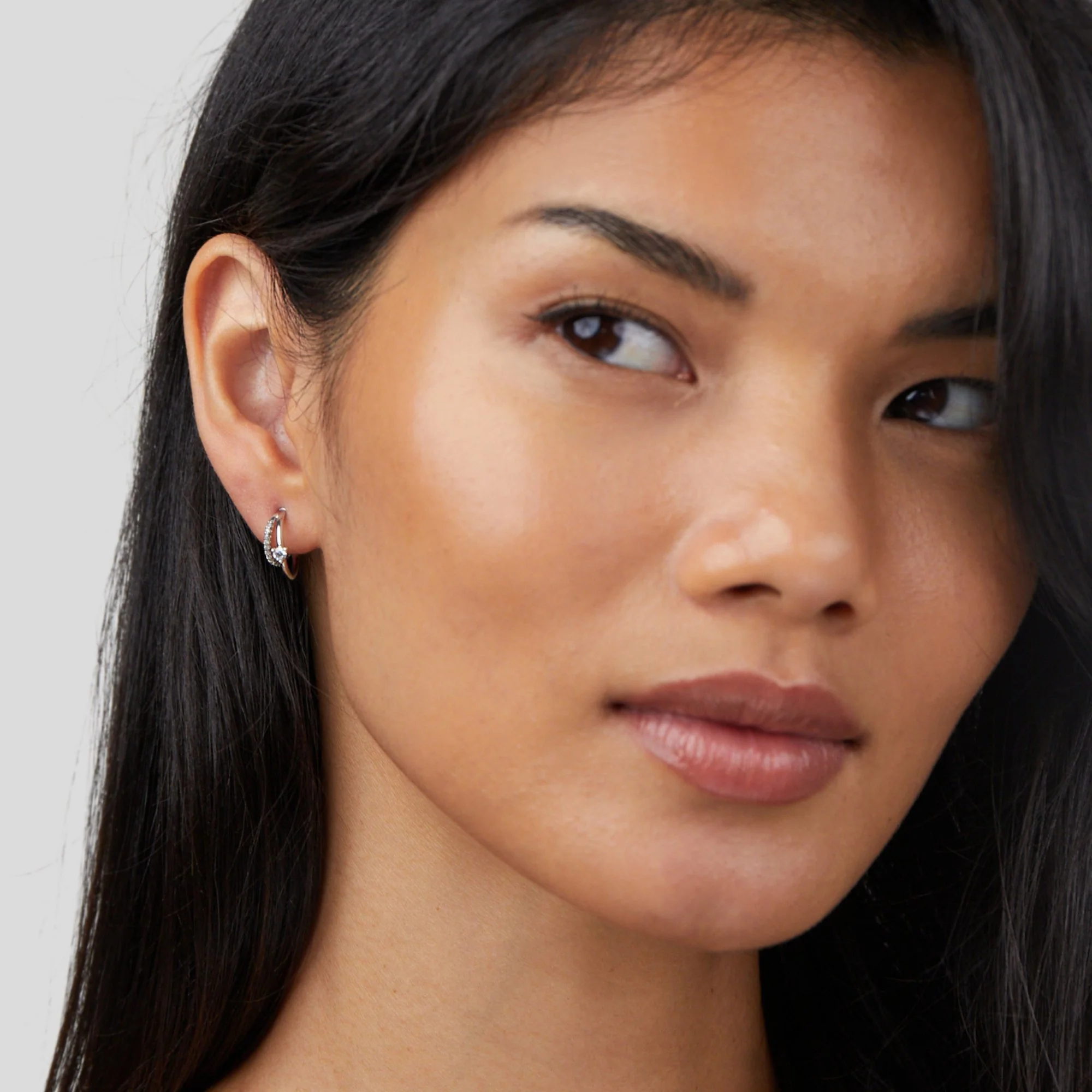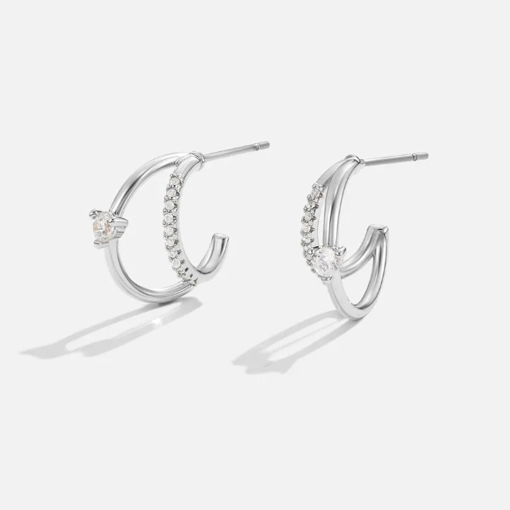 Keep it sleek and unique with these stunning Layered Crystal Silver Hoop Earrings. Designed to add a unique twist to the timeless hoop look, these earrings can now be your everyday go-to pair.