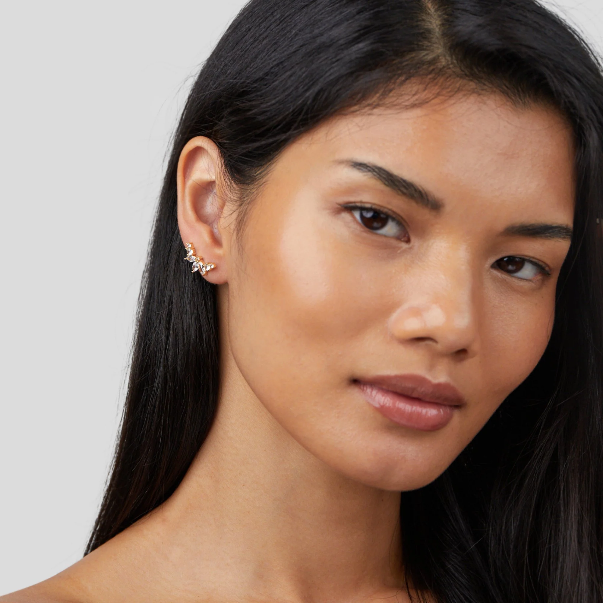 The leaves are the crown of the tree, they are nature’s symbol of happiness, growth, and change. Elegant and beautiful, these Lily Crystal Gold Leaf Earrings will allow you to feel closer and more connected with nature.
