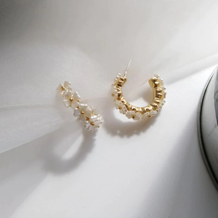 Add a touch of sweetness to any look with our stunning Mother Of Pearl Flower Earrings. Elegant, unique, and perfect for any occasion.