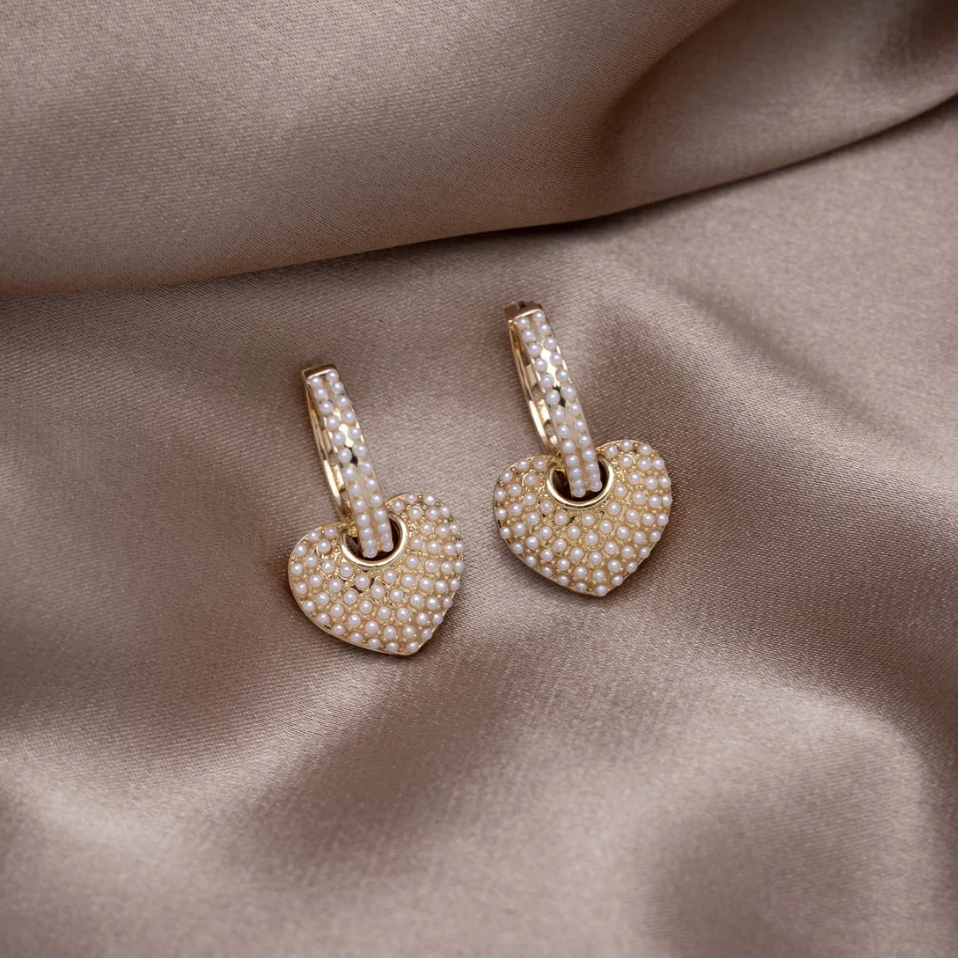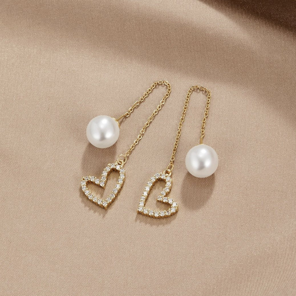 Heart & Pearl Drop Earrings