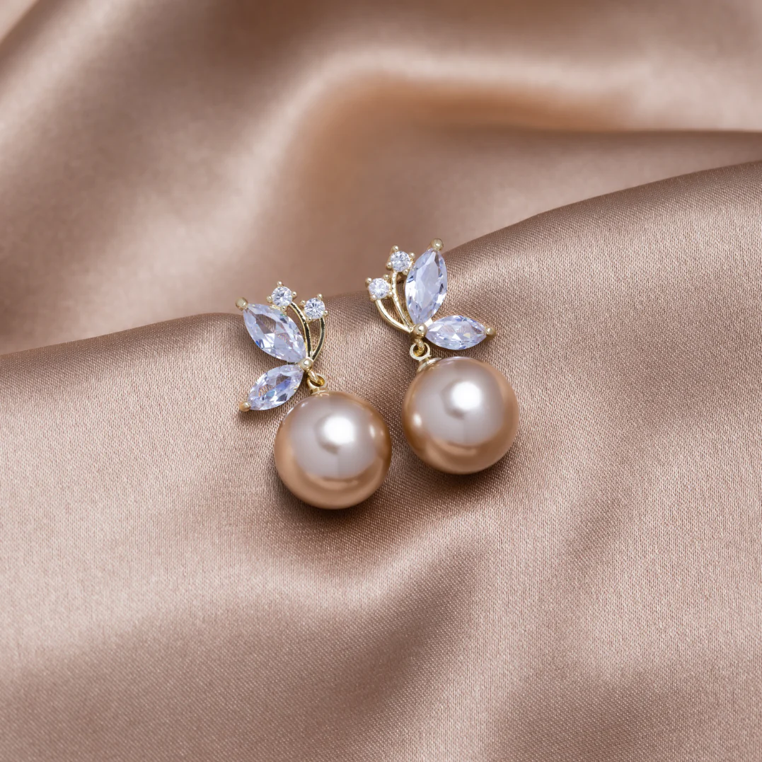 Crystal Butterfly & Pearl Taupe Earrings