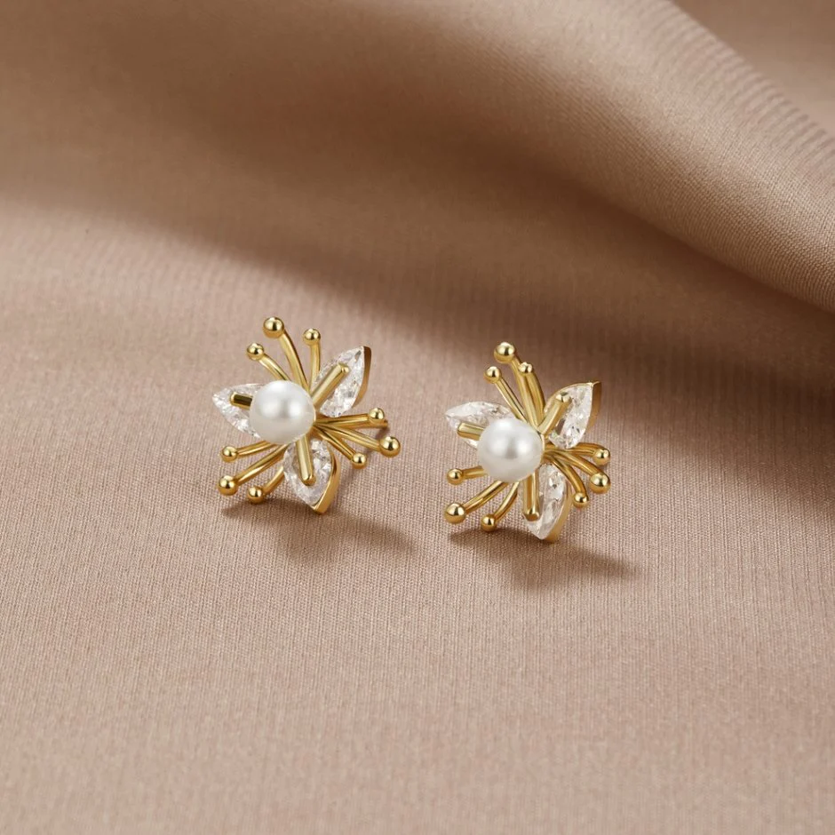 Crystal & Pearl Flower Earrings
