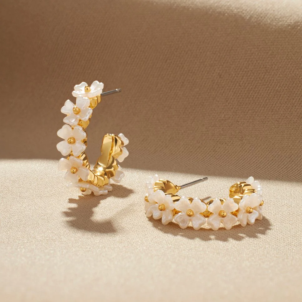 White Ivory Crystal Gold Hoop Earrings