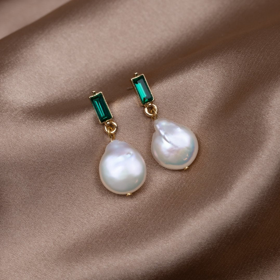 Green Crystal & Pearl Earrings