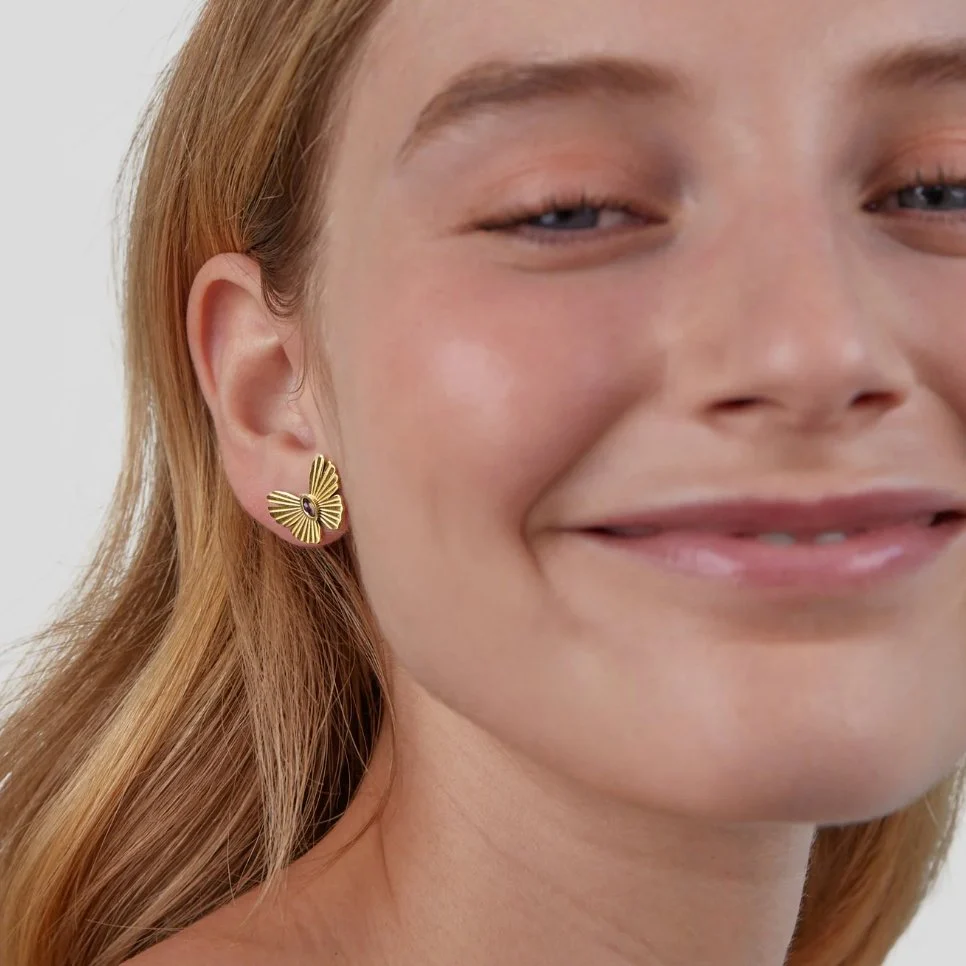 Delicate, elegant and unique, butterflies are beautiful symbols of change & transformation. Made from real 18K gold plating, lightweight & waterproof, these earrings are perfect to add a pop of color & playfulness to your outfit.