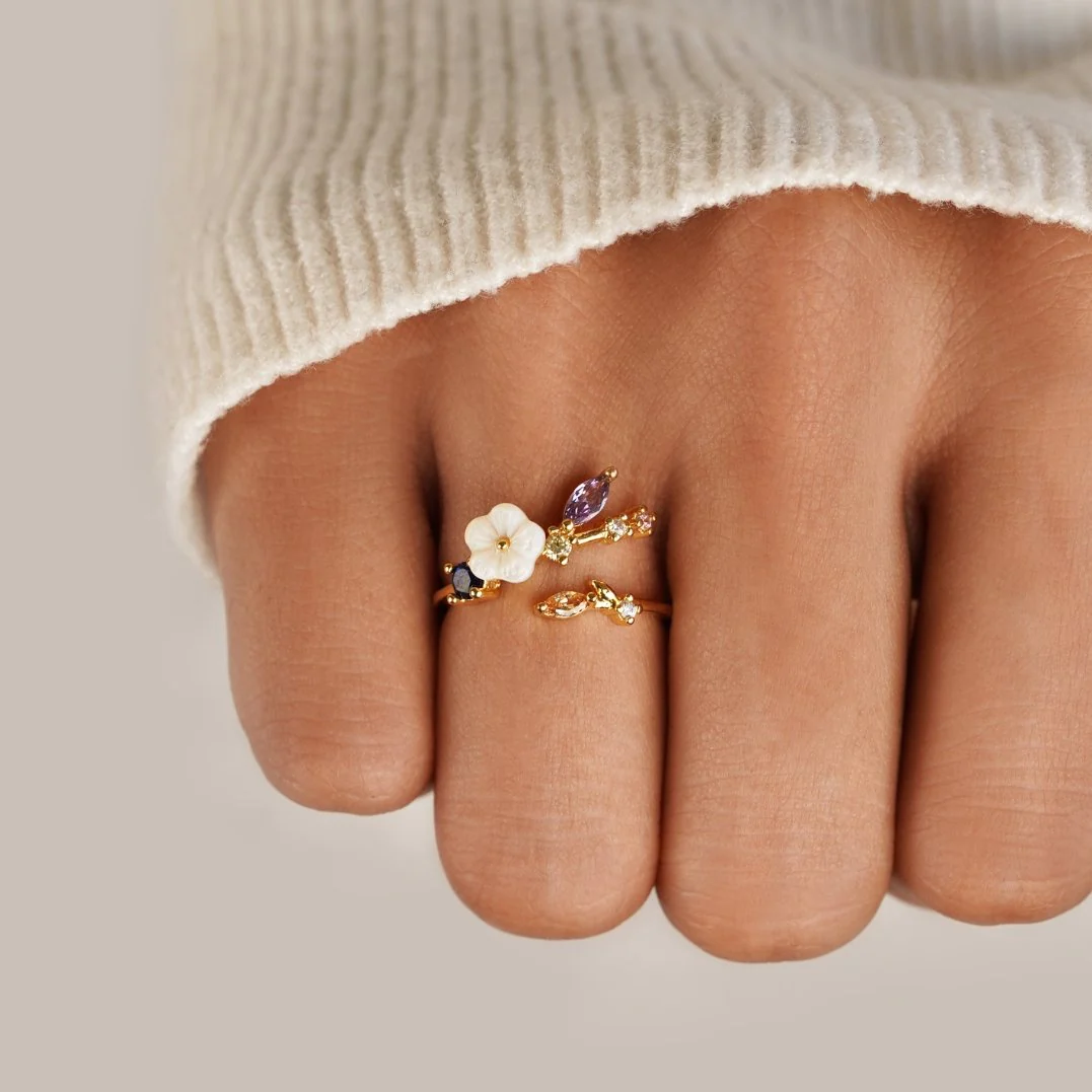 Crystal White Blossom Rings Gold