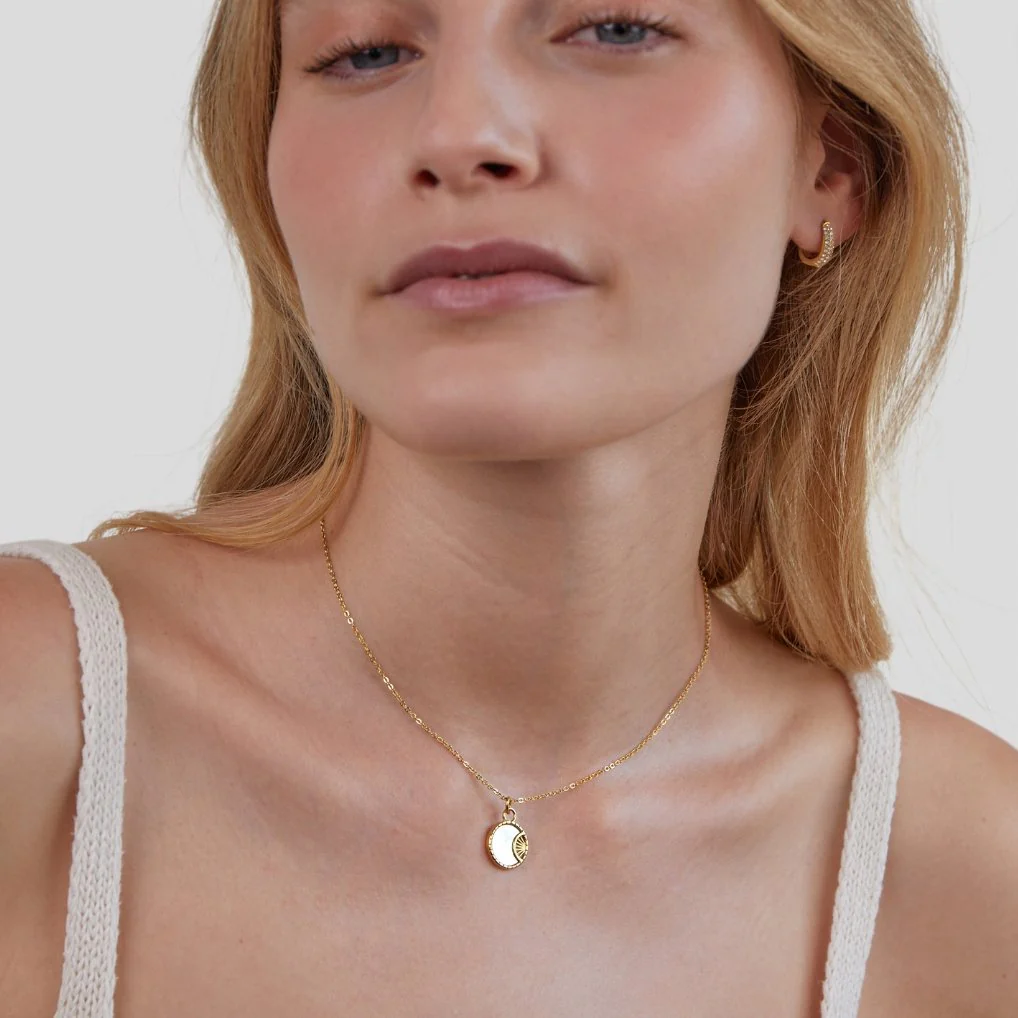Keep the power and warmth of the sun everywhere you go with this Kalindi ('daughter of the sun') 18K Gold Necklace. Made with waterproof stainless steel, you never need to have to worry about tarnishing or fading jewelry.