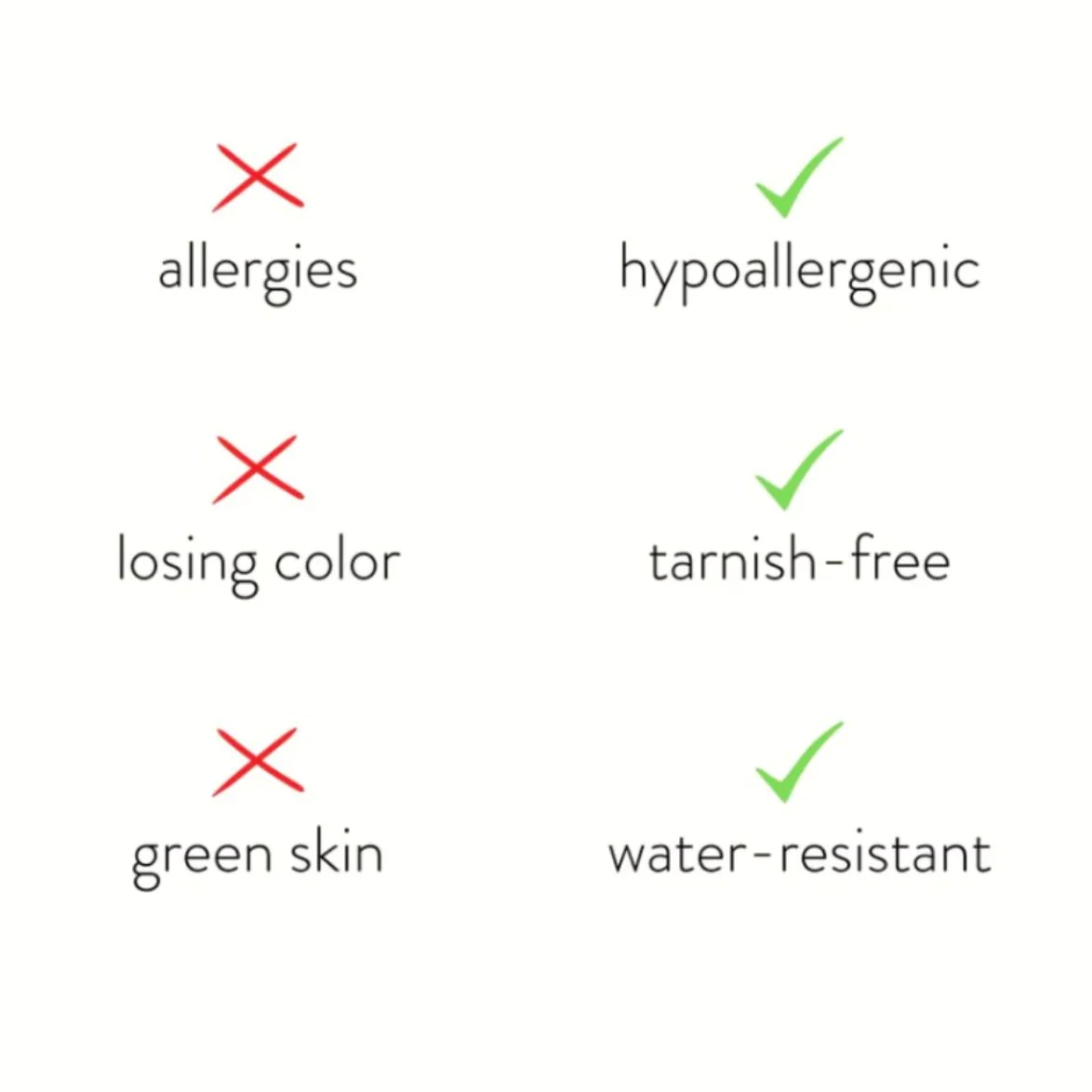 Made with waterproof stainless steel, you never need to worry about fading or tarnishing jewelry ever again!