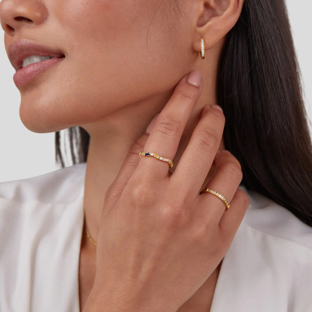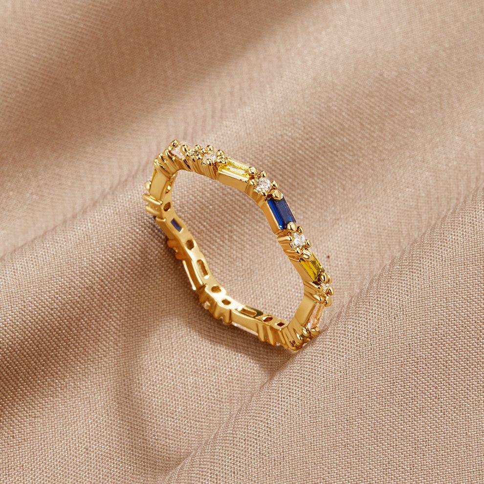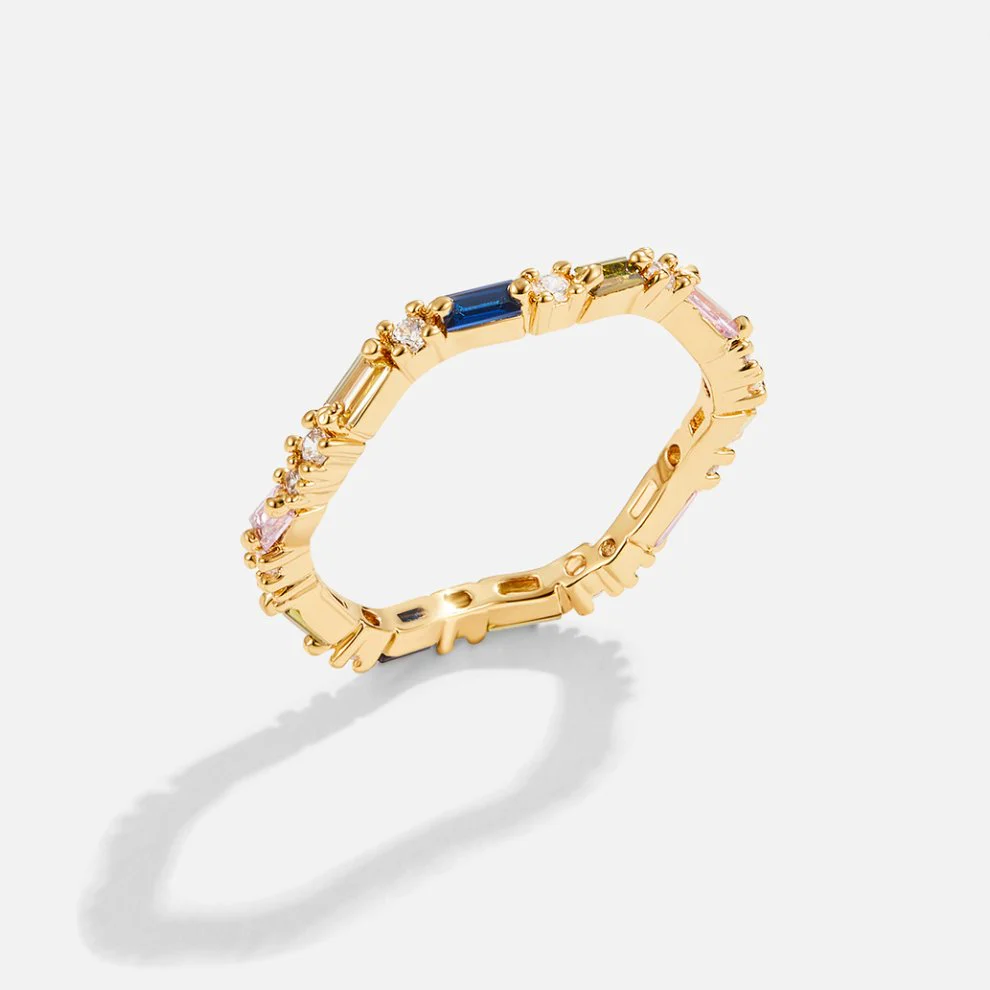 Add color, creativity and beauty to any look with this beautiful Golden Wave Rainbow Crystal Ring. Wear it on its own, or stack it for a unique look. No matter the occasion, this ring will sparkle all day long.