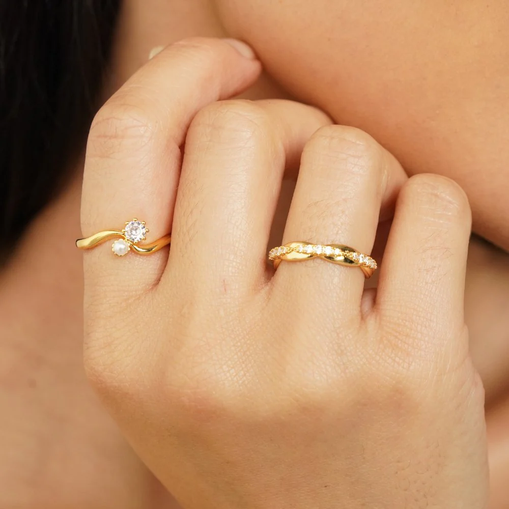 Yaseena Double Pearl & Crystal Ring