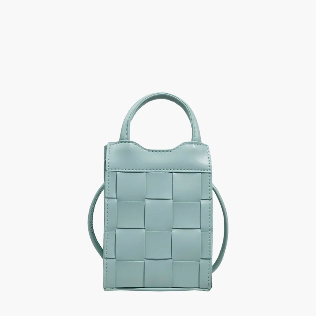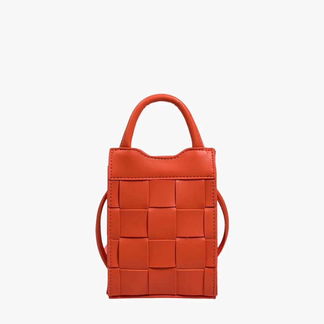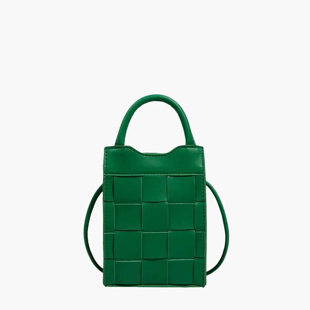 Embrace vintage style with the Woven Phone Bag, a stylish companion crafted from smooth vegan leather in a woven pattern. Its compact size and secure closure make it perfect for carrying your essentials. The perfect bag for a night out, dinner and daily use.