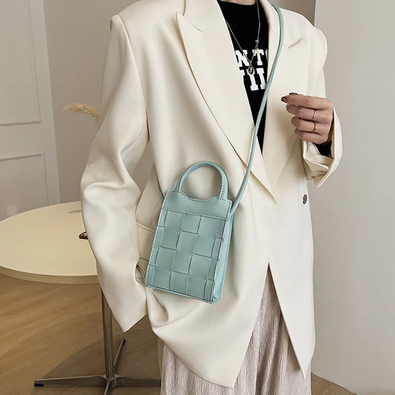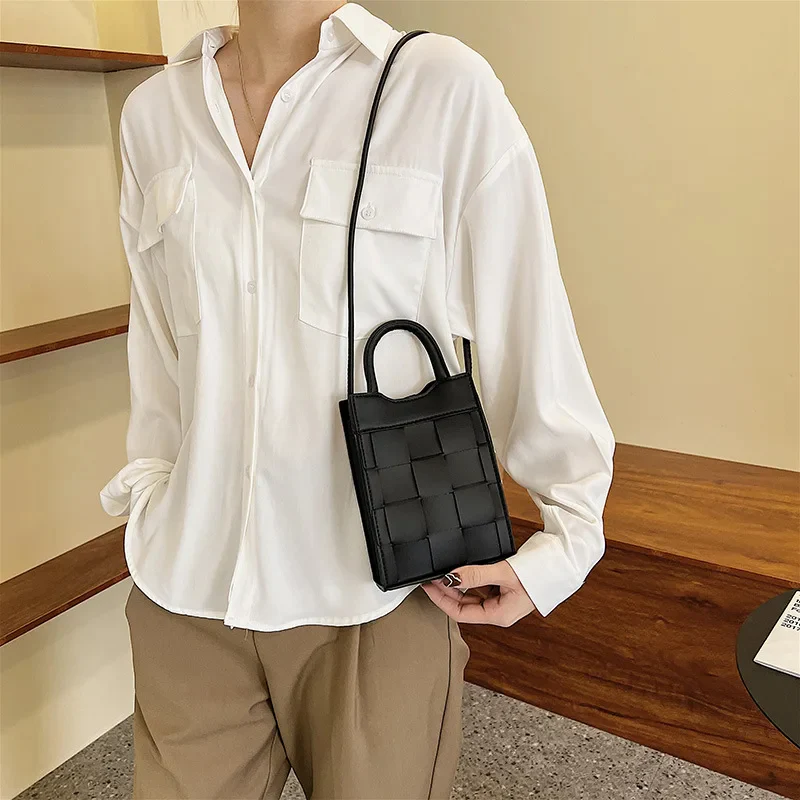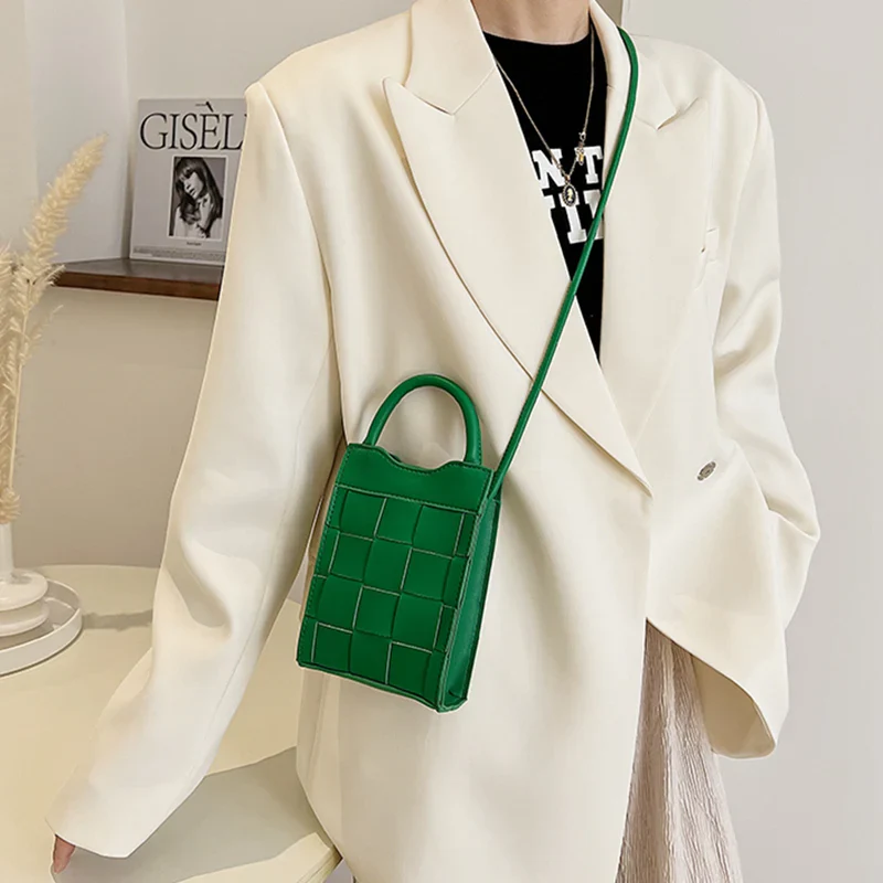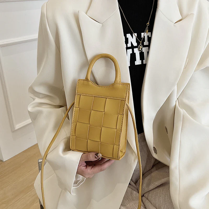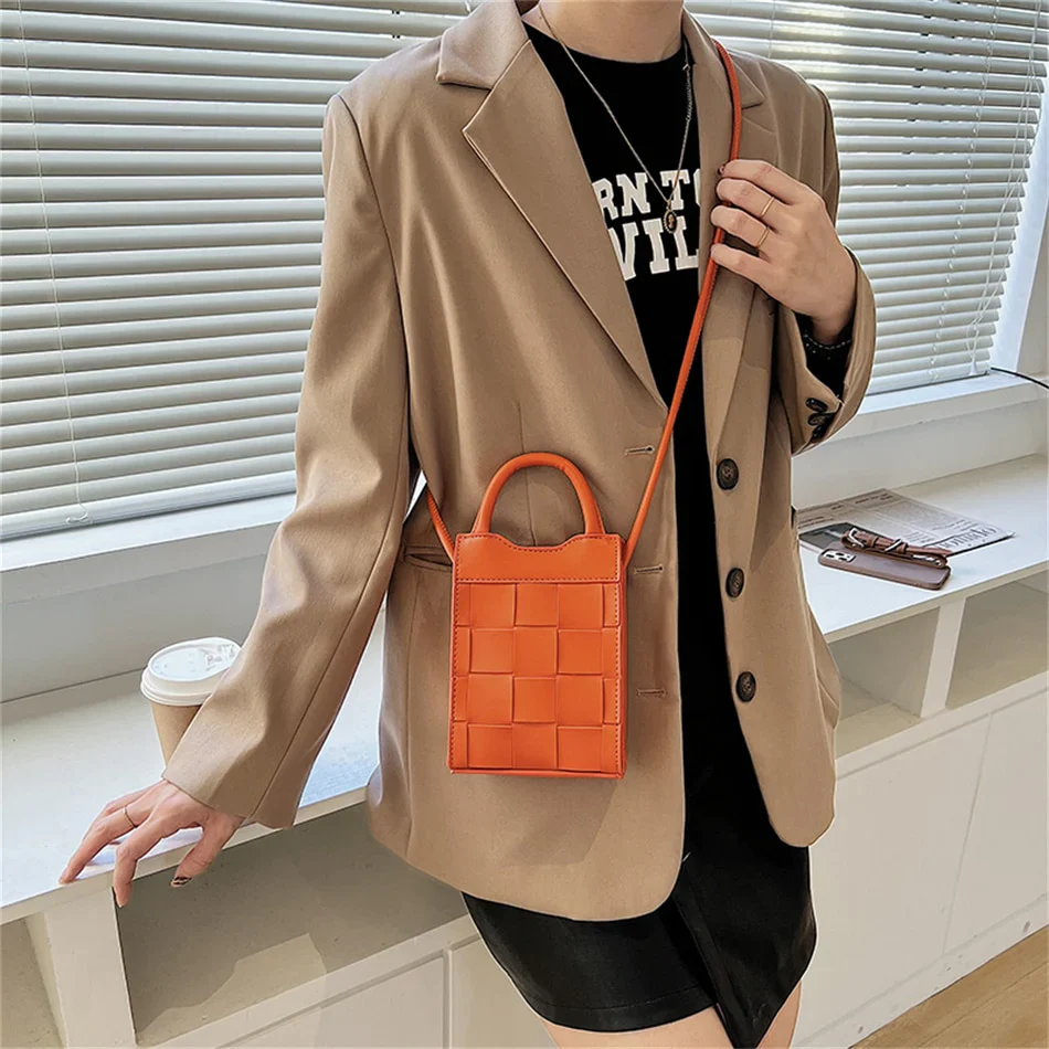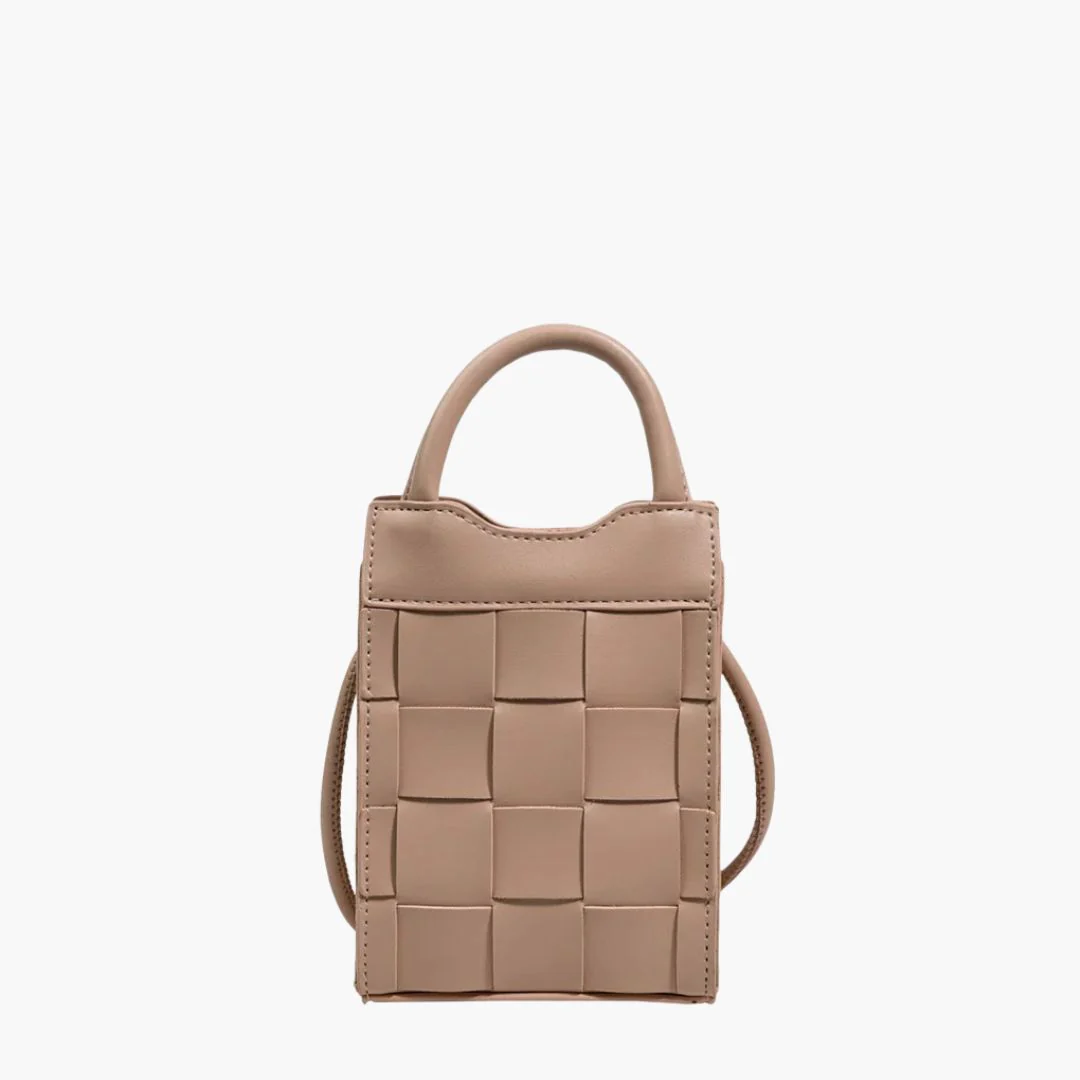 Embrace vintage style with the Woven Phone Bag, a stylish companion crafted from smooth vegan leather in a woven pattern. Its compact size and secure closure make it perfect for carrying your essentials. The perfect bag for a night out, dinner and daily use.